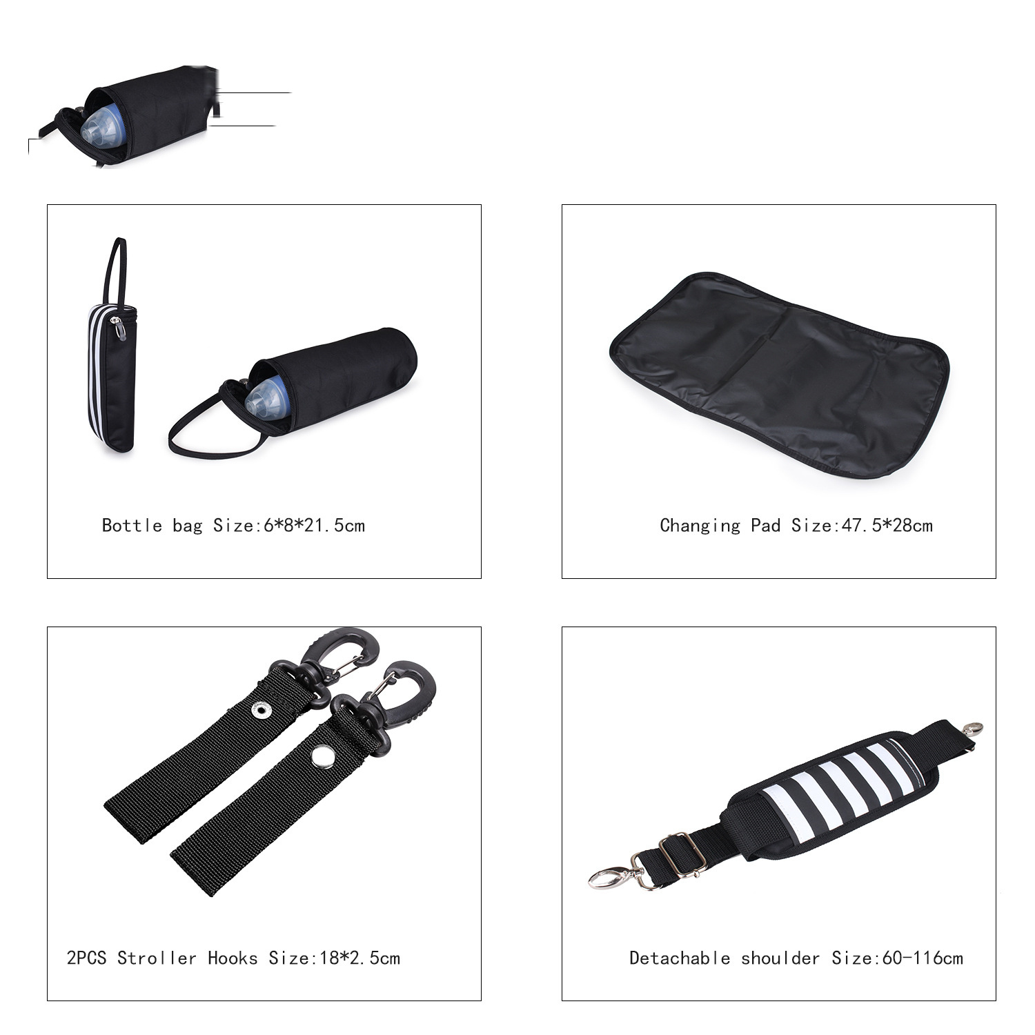 Hand-held, single-shoulder, diagonal shoulder, stroller, etc.